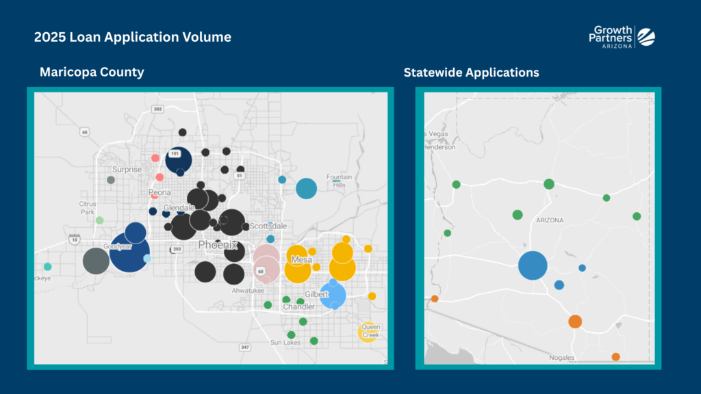 In 2025, Growth Partners Arizona received 141 loan applications from entrepreneurs across the state, with an average capital request of $48,800. Those numbers represent more than volume; they reflect the growing demand for accessible capital among small businesses working to build and sustain their communities.